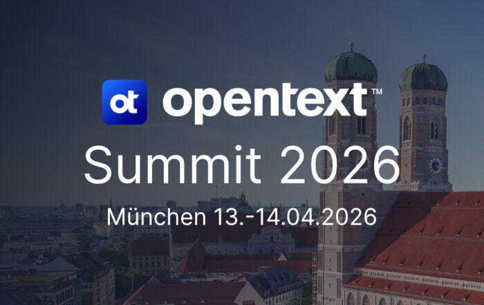 Vom 13.-14.04.2026 lädt der Hersteller OpenText wieder zum jährlichen Summit in München ein. Registrieren Sie sich jetzt kostenlos zum Event und erhalten Sie spannende Einblicke in das Produkt Portfolio des Herstellers.